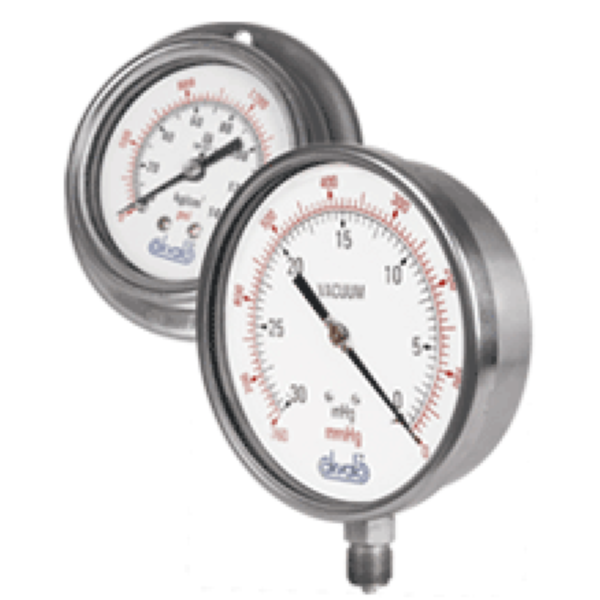Nominal Size (mm) 40, 50, 63, 80, 100, 150, 250.Scale Range 0.. Vacuum to 700 kg/cm2 & above on requestAccuracy in FSD 1%Thread connection 1/8″, 1/4″, 3/8″, 1/2″ BSP and NPT, M-10, M-12, M-20Mounting of Gauge Bottom, Surface, Back, Panel with 3 holes, Panel with bracketCase and Bezel Drawn steel, SS 304Pressure Elements Bourdon TubeDiaphragm NilWetted Parts Brass, SS 304 and other material on request. Application:- Chemical and Petrochemical, Plastic and Paper Pneumatic control system, Air conditioningOptional IBR Approved and Liquid Filled