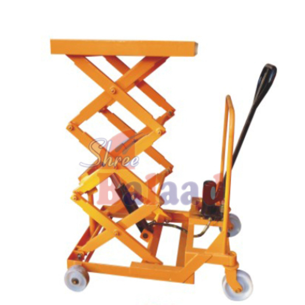 With the help of multiple scissors table can lift 1000 mm to 3000 mm